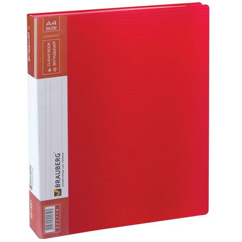 Папка 40 вкладышей BRAUBERG "Contract", красная, вкладыши-антиблик, 0,7 мм, бизнес-класс, 221778