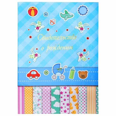Папка адресная ламинированная "СВИДЕТЕЛЬСТВО О РОЖДЕНИИ", А4, для мальчика, STAFF "Profit", 129588