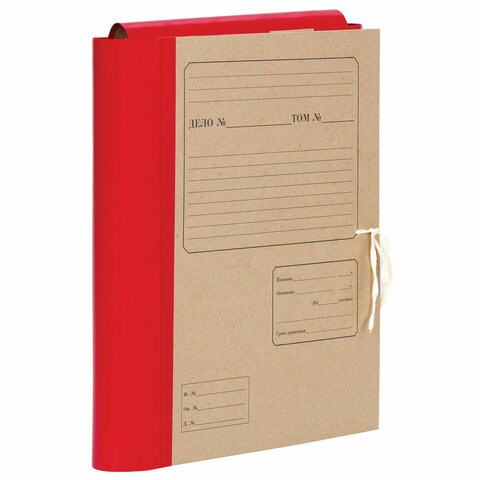 Папка для бумаг архивная А4 (225х310 мм), 80 мм, 4 завязки, крафт, корешок - бумвинил, 123203