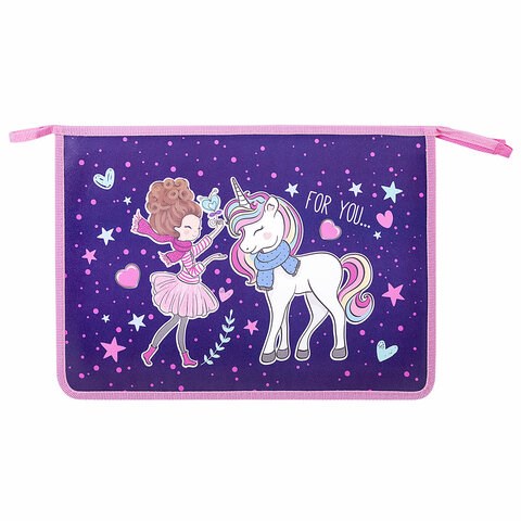Папка для тетрадей ЮНЛАНДИЯ А4, 1 отделение, пластик, на молнии, "Little Friends", 271453