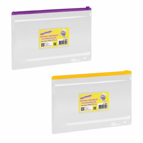 Папка-конверт на молнии МАЛОГО ФОРМАТА (240х175 мм), А5, ассорти, 0,12 мм, ЮНЛАНДИЯ, 229551