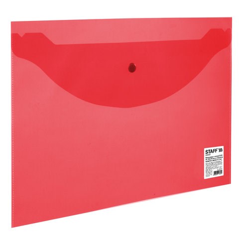 Папка-конверт с кнопкой STAFF, А4, до 100 листов, прозрачная, красная, 0,12 мм, 225172
