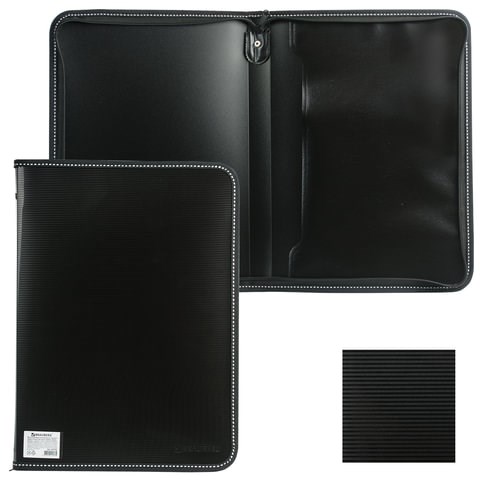 Папка на молнии пластиковая BRAUBERG "Contract", А4, 335х242 мм, внутренний карман, черная, 225162