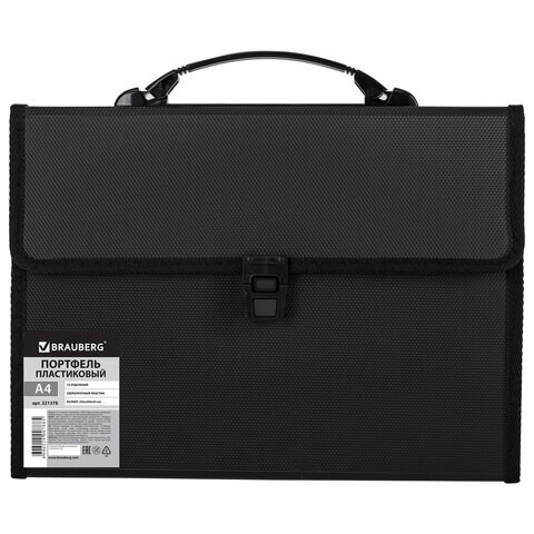 Папка-портфель пластиковая BRAUBERG А4 (332х245х35 мм), 13 отделений, черная, 221378