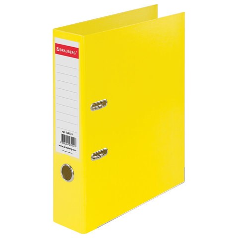 Папка-регистратор BRAUBERG "EXTRA", 75 мм, желтая, двустороннее покрытие пластик, металлический уголок, 228574