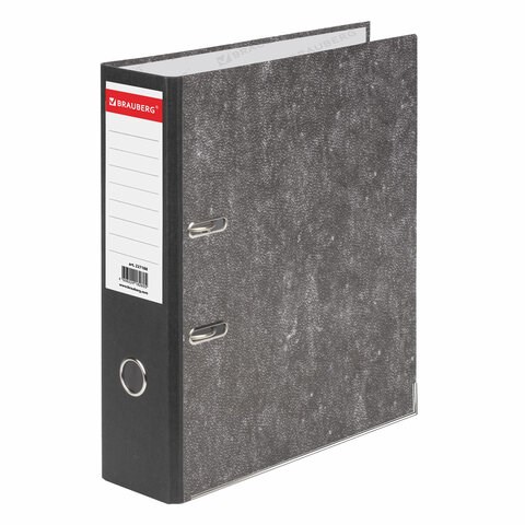Папка-регистратор BRAUBERG, усиленный корешок, мраморное покрытие, 80 мм, с уголком, черная, 227188