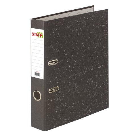 Папка-регистратор STAFF "Basic" БЮДЖЕТ с мраморным покрытием, 50 мм, без уголка, черный корешок, 227184