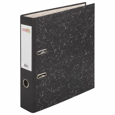 Папка-регистратор STAFF Basic БЮДЖЕТ с мраморным покрытием, 70 мм, без уголка, черный корешок, 880907