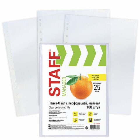 Перфорированные папки-файлы STAFF "ЭКОНОМ" обеспечивают сохранность бумажных носителей, защищают их от истирания, увлажнения, загрязнения, при этом обладают требуемыми параметрами прочности и прозрачности, позволяют систематизировать все важные документы.