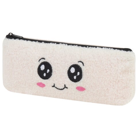 Пенал ЮНЛАНДИЯ, 1 отделение, плюш, "Smiley face", белый, 22х8x3 см, 272269