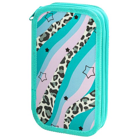 Пенал ЮНЛАНДИЯ, 2 отделения, ламинированный картон, блестки, 19х11 см, "Trendsetter", 271537