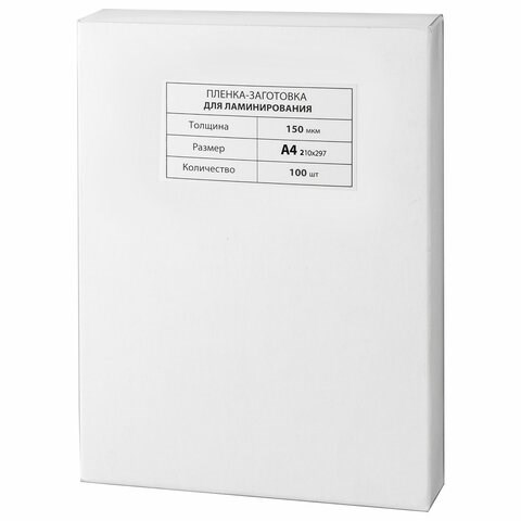 Пленки-заготовки для ламинирования А4, КОМПЛЕКТ 100 шт., 150 мкм, МАТОВАЯ, BRAUBERG, 531781