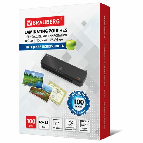 Пленки-заготовки для ламинирования МАЛОГО ФОРМАТА (65х95 мм), КОМПЛЕКТ 100 шт., 100 мкм, BRAUBERG, 530903