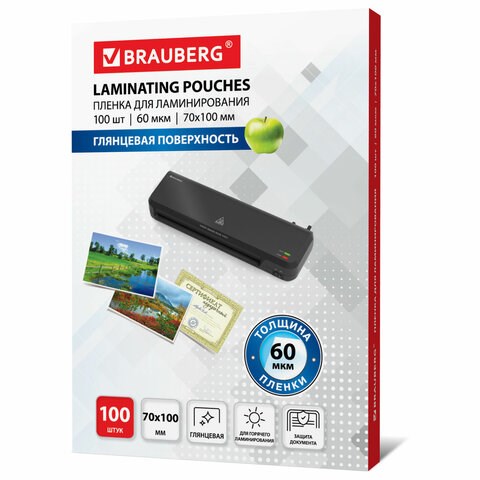 Пленки-заготовки для ламинирования МАЛОГО ФОРМАТА (70х100 мм), КОМПЛЕКТ 100 шт., 60 мкм, BRAUBERG, 531790