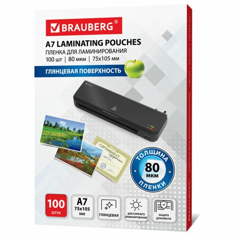 Пленки-заготовки для ламинирования МАЛОГО ФОРМАТА, А7, КОМПЛЕКТ 100 шт., 80 мкм, BRAUBERG, 531786