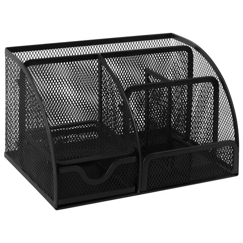Подставка-органайзер металлическая BRAUBERG "Germanium", 7 секций, 125х220х140 мм, черная, 237416
