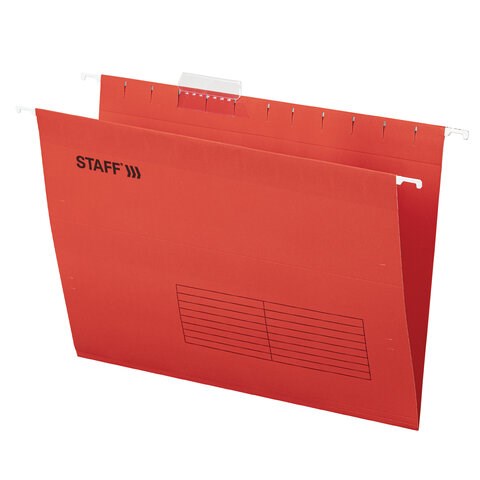 Подвесные папки А4 (350х240 мм) до 80 л., КОМПЛЕКТ 10 шт., красные, картон, STAFF, 270931