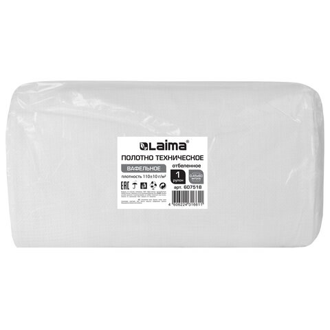 Полотно ВАФЕЛЬНОЕ отбеленное, рулон 0,45х60 м, плотность 110 (±10) г/м2, LAIMA, 607518, ГС