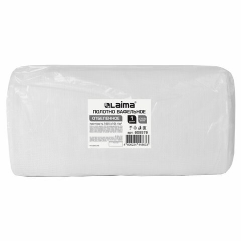 Полотно ВАФЕЛЬНОЕ отбеленное, рулон 0,45х60 м, в пакете, плотность 160 (±10) г/м2, LAIMA, 609576