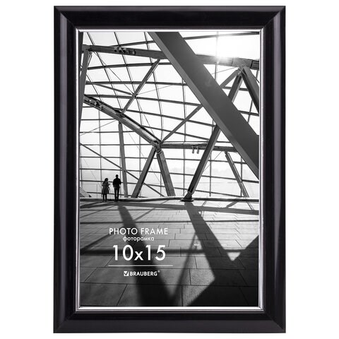 Рамка 10х15 см небьющаяся, багет 14,6 мм, пластик, BRAUBERG "Original Line", черная/серебро, 391233