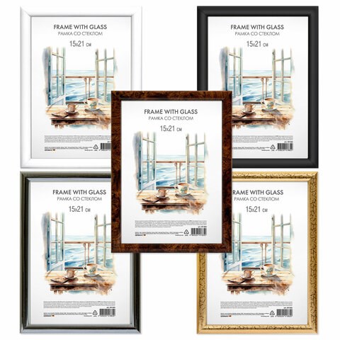 Рамка 15х21 см со стеклом, багет 15 мм, пластик, BRAUBERG "HIT3", 5 цветов ассорти, 391382