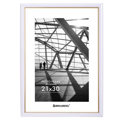 Рамка 21х30 см небьющаяся, багет 14,6 мм, пластик, BRAUBERG "Original Line", белая/золото, 391236