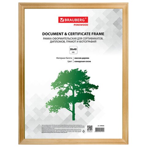 Рамка 30х40 см, дерево, багет 18 мм, BRAUBERG "HIT", канадская сосна, стекло, 390026