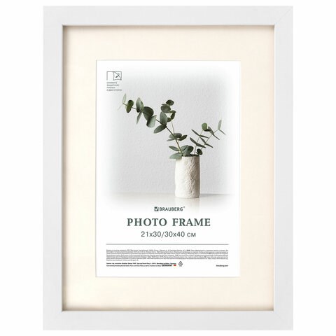 Рамка 30х40 см с паспарту 21х30 см, небьющаяся, багет 26 мм, МДФ, BRAUBERG "Ambassador", белая, 391368