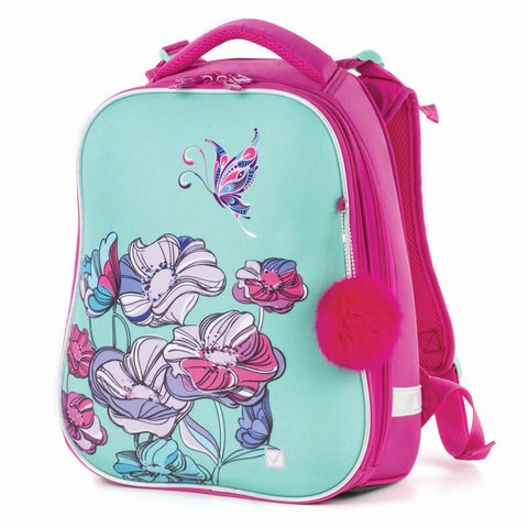 Ранец BRAUBERG PREMIUM, 2 отделения, с брелоком, для девочек, "Весенняя мята", 38х29х18 см, 227817