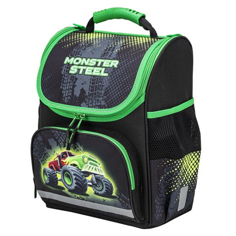 Ранец ПИФАГОР BASIC, 1 отделение, 3 кармана, эргономичная спинка, "Monster steel", 35х28х18 см, 270686