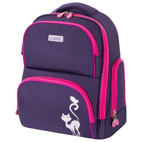 Рюкзак BRAUBERG CLASSIC, легкий каркас, премиум материал, "Graceful cat", фиолетовый, 37х32х21 см, 270087