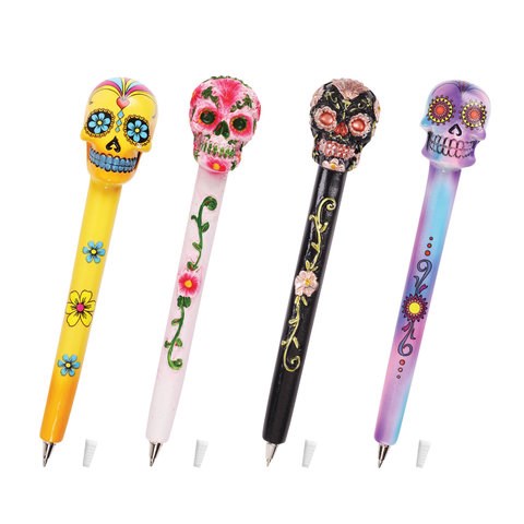 Ручка фигурная "ЧЕРЕПА", СИНЯЯ, 4 дизайна ассорти, линия письма 0,5 мм, дисплей, BRAUBERG, 142752