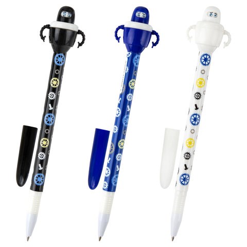 Ручка фигурная шариковая ЮНЛАНДИЯ "Робот", корпус ассорти, СИНЯЯ, пишущий узел 0,7 мм, 143790