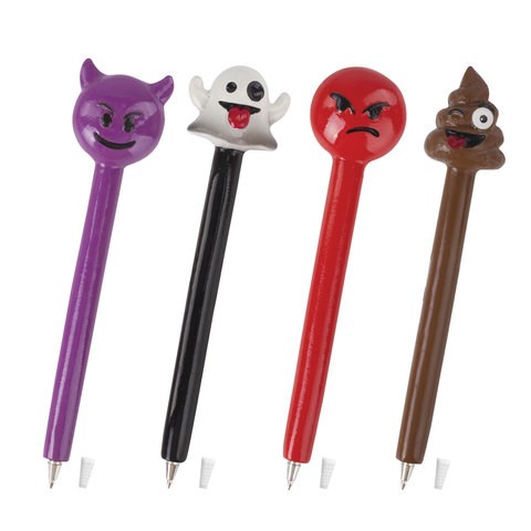 Ручка фигурная "СМАЙЛИКИ МИКС-2", СИНЯЯ, 4 дизайна ассорти, линия письма 0,5 мм, дисплей, BRAUBERG, 142772