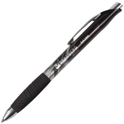 Ручка гелевая автоматическая с грипом BRAUBERG "Jet Gel", ЧЕРНАЯ, печать, узел 0,6 мм, линия письма 0,4 мм, 142691