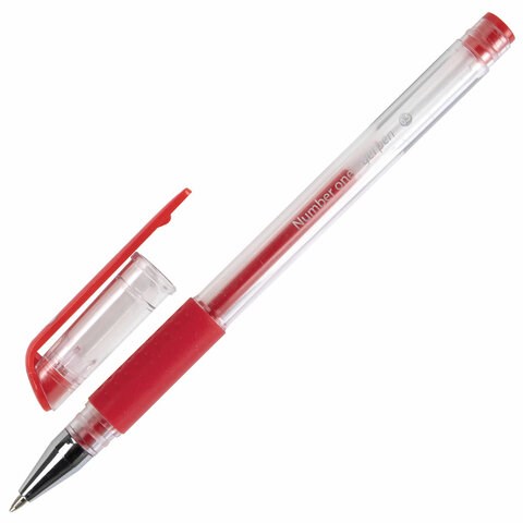 Ручка гелевая с грипом BRAUBERG "Number One", КРАСНАЯ, узел 0,5 мм, линия письма 0,35 мм, 141195