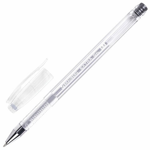 Ручка гелевая СЕРЕБРИСТАЯ BRAUBERG "EXTRA SILVER", корпус прозрачный, 0,5 мм, линия 0,35 мм, 143913