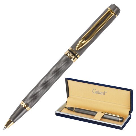 Ручка подарочная шариковая GALANT "Dark Chrome", корпус матовый хром, золотистые детали, пишущий узел 0,7 мм, синяя, 140397