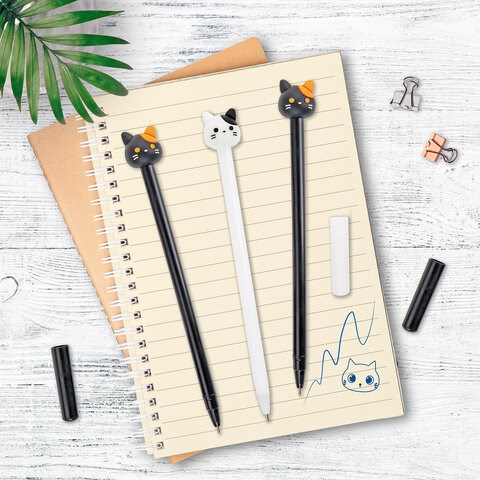 Ручка с топпером шариковая ЮНЛАНДИЯ "Кошка", корпус ассорти, СИНЯЯ, пишущий узел 0,7 мм, 143804