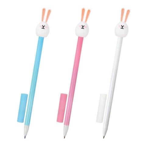 Ручка с топпером шариковая ЮНЛАНДИЯ "Ушастый зайка", корпус ассорти, СИНЯЯ, пишущий узел 0,7 мм, 143782