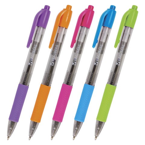 Ручка шариковая автоматическая с грипом BRAUBERG "Insight", СИНЯЯ, детали ассорти, узел 0,7 мм, линия письма 0,35 мм, 141548