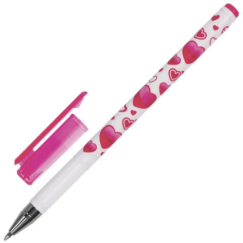 Ручка шариковая BRAUBERG "Сердечки", СИНЯЯ, корпус с печатью, узел 0,7 мм, линия письма 0,35 мм, 141535