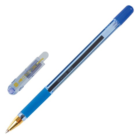 Ручка шариковая масляная с грипом MUNHWA "MC Gold", СИНЯЯ, корпус тонированный синий, узел 0,7 мм, линия письма 0,5 мм, BMC07-02