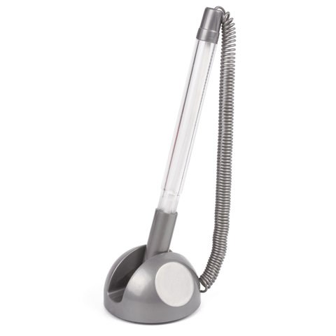 Ручка шариковая настольная BRAUBERG "Стенд-Пен", СИНЯЯ, пружинка, корпус серебристый, линия письма 0,5 мм, 142164