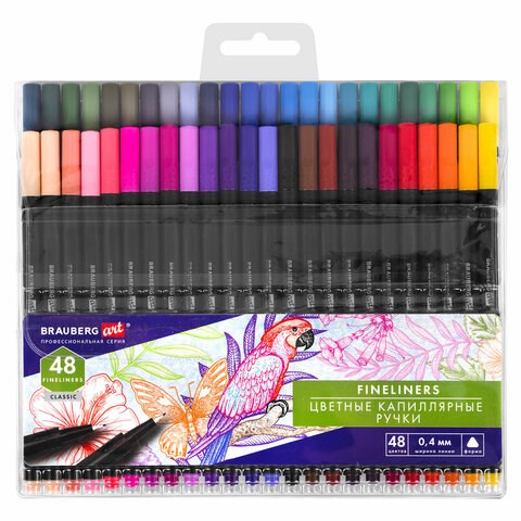Ручки капиллярные (линеры), 48 ЦВЕТОВ, BRAUBERG ART "Classic", трехгранные, металлический наконечник, линия письма 0,4 мм, 144149