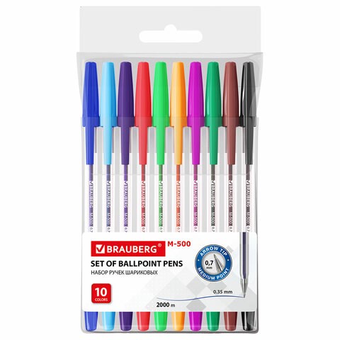 Ручки шариковые BRAUBERG "M-500", НАБОР 10 цветов, АССОРТИ, узел 0,7 мм, линия письма 0,35 мм, 143455