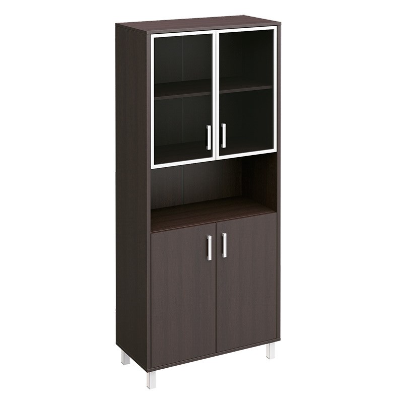 Стеллаж низкий с надстройкой и стеклянными дверками