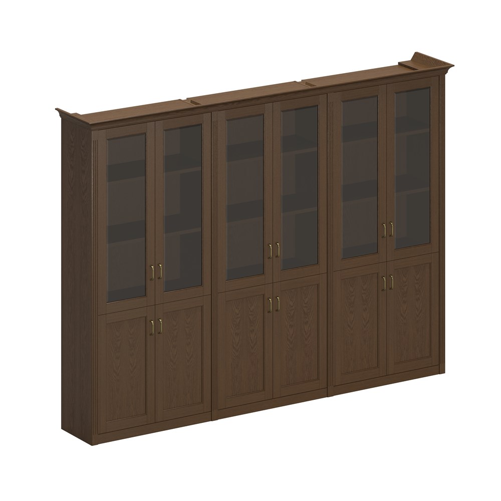 Шкаф комбинированный высокий (2 для документов со стеклянными дверями + 1 для одежды с дополнением)