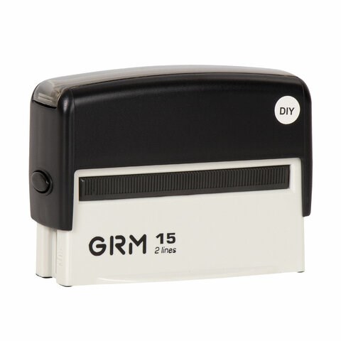 Изготовлен на основе оснастки GRM 15. Прозрачное окошко обеспечивает точное позиционирование оттиска. Специальные держатели позволяют не пачкать руки при смене подушки. Возможность нанесения логотипа на лицевую поверхность.