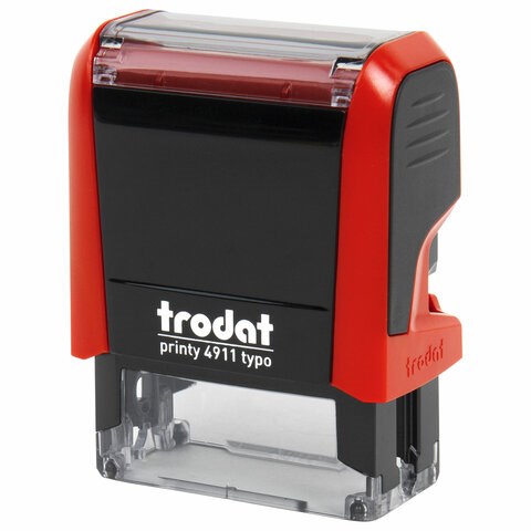 Штамп самонаборный 3-стр, 38х14 мм, синий, TRODAT 4911P4/DB, корпус КРАСНЫЙ, КАССА В КОМПЛЕКТЕ, 43217